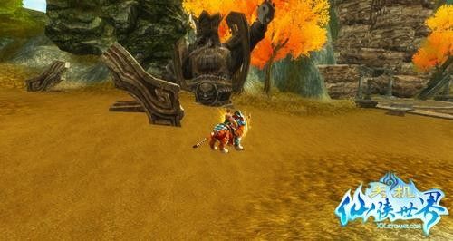 四象天被战火摧毁的石像残骸,这应该是一名颇具功力的仙界神将,手里拿着阴阳镜正在降服妖魔。破损的残骸不仅仅告诉我们四象天是一个战火纷飞的场景,更告诉我们了战争的无情。