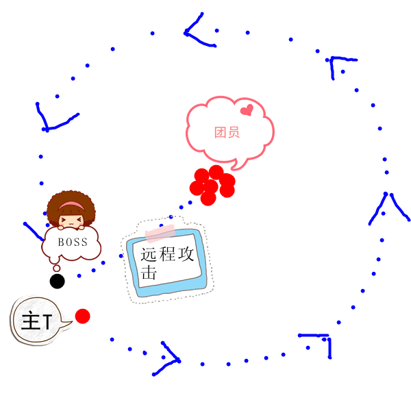 最后附上一张拉怪版示意图,学会拉怪,那么上面一切都是浮云,轻松过关不在话下,拉怪具体不知道怎么控制的话,很简单,第一个BOSS的点,就那么点大,差不多围边绕圈就可以了