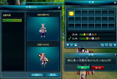 第二步,对你想要改变外观的玄兽使用幻化珠,以小浣熊宝宝为例,对小浣熊宝宝使用小狐仙幻化珠。