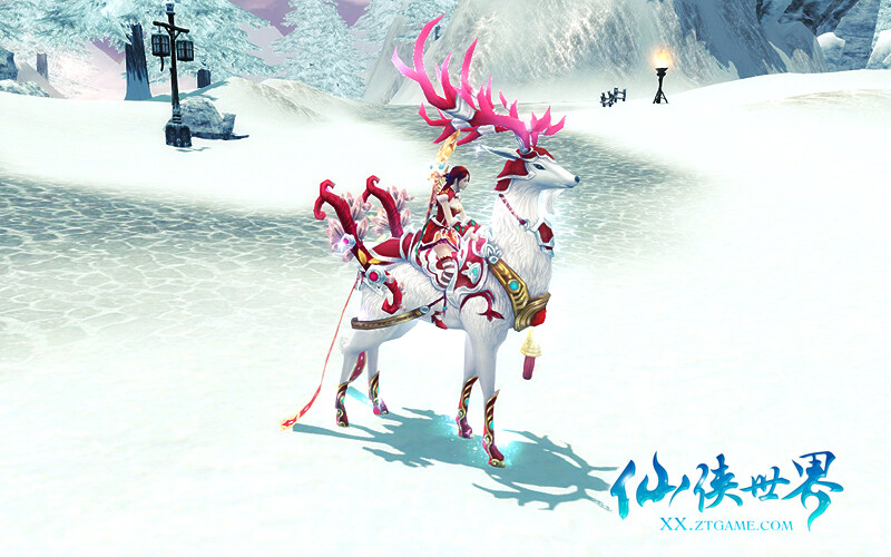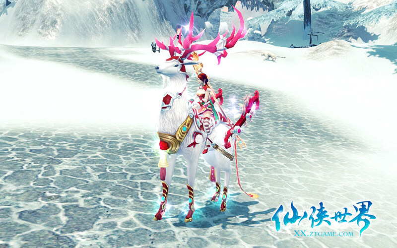 鹿车?雪橇?传承正统仙侠文化的仙侠世界,自然不会单一如始,使用传统的道具。为圣诞特意定制的圣诞麋鹿,不仅全身毛发雪白飘逸如风,更是有着英俊的容貌,长长的睫毛通过3D视觉拉近,都能看得见她若有若无的眨动。配合红缎和五彩铃铛等圣诞元素的点缀下,圣诞麋鹿又仙又可爱。
